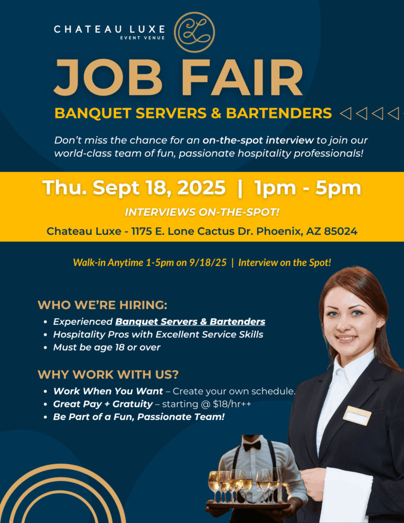 Discover award-winning event spaces at Chateau Luxe in Phoenix. Perfect for corporate events, weddings, and more. Book now for your next special occasion.